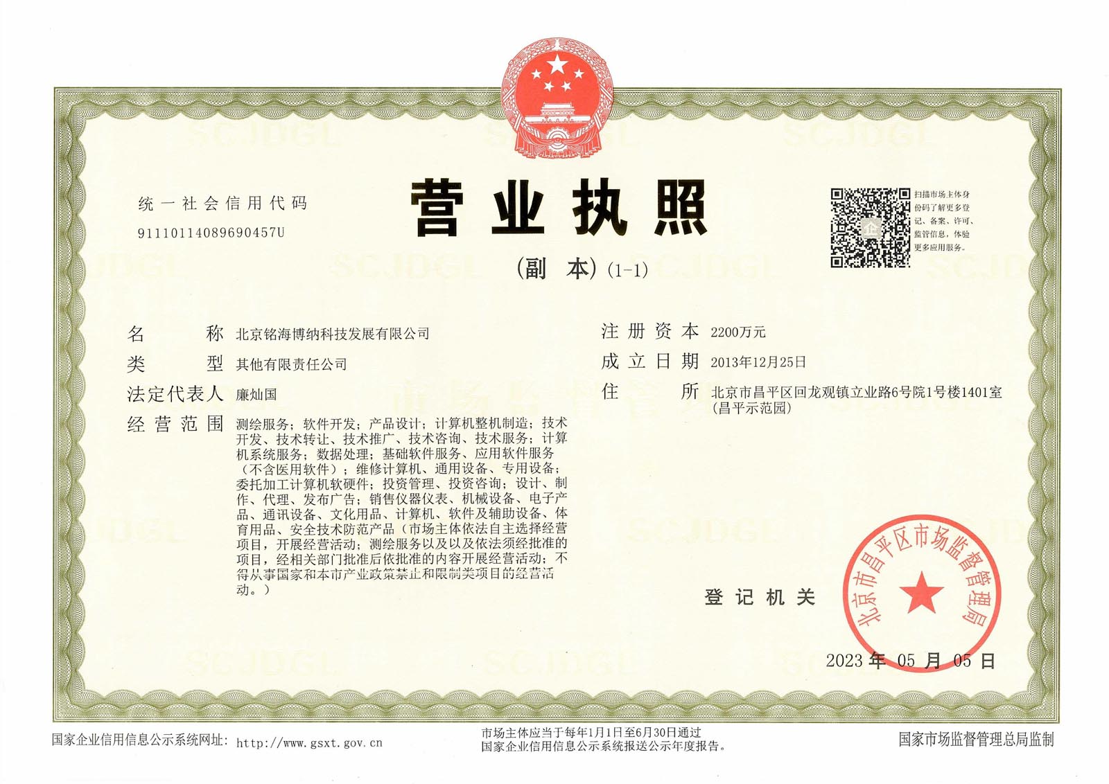 北京铭海博纳科技发展有限公司成立于2013年,总部位于北京市昌平区大数据智能产业园,注册资金2200万元,办公面积约1200㎡。